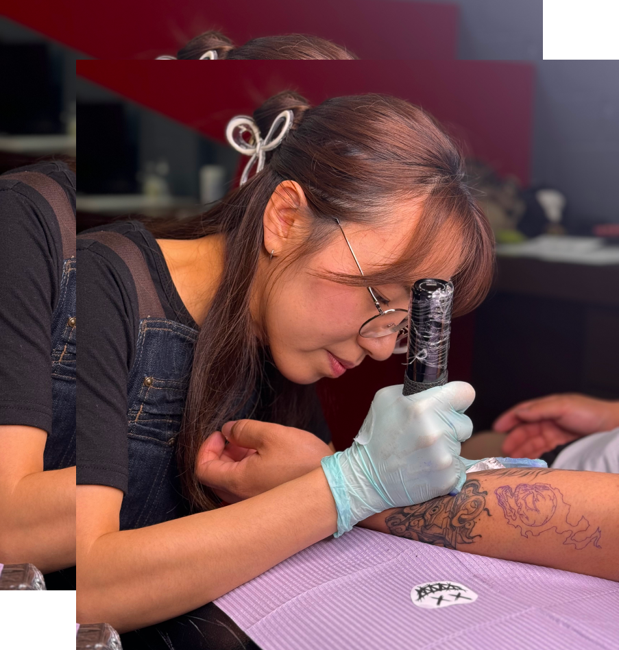 Meet Reighlee – Rei for short, a talented tattoo artist who specializes in fine line tattoos, with a flair for feminine elegance. Rei's work is defined by intricate details, soft curves, and a keen eye for design that caters to the feminine aesthetic. Her fine line tattoos are not just ink; they are expressions of individuality, grace, and beauty. With each stroke of her needle, Rei brings to life a unique blend of art and empowerment, making her a sought-after artist.